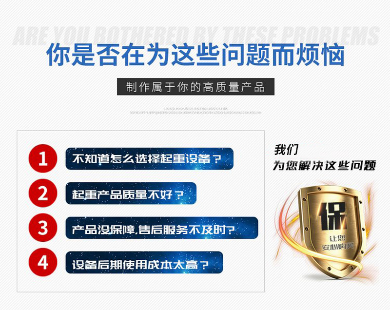出于和高空作业考虑,请用户根据实际情况指定设备的维护保养计划,按如下重点提示至少每半年或一年进行检查一下。1、螺栓连接线,地脚螺栓的螺栓连接,带止挡器端盖的螺栓连接。旋臂安装的螺栓连接,驱动装置安装的螺栓连接。
