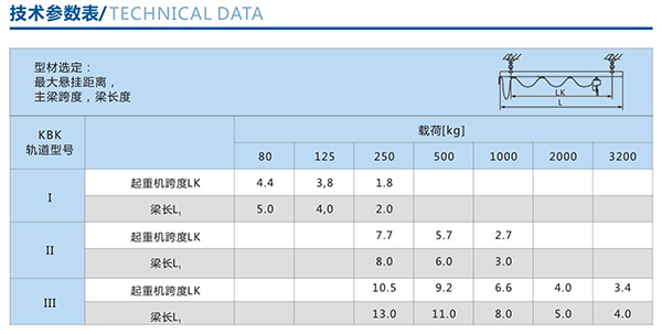 轻小型起重机设备/轻型起重机 轻小型起重机设备 采用形状,2片焊接而成。常用的是KBKII型轨道,多根轨道可用高强度螺栓连接。弯轨的转弯半径1.5m,大弯可用直轨搭配。没有更小半径